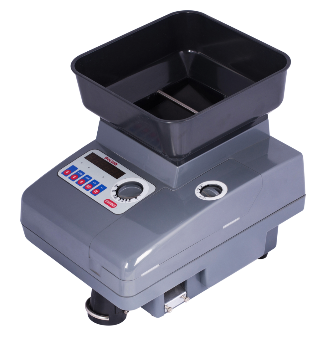 DoCash 923 – скоростное устройство для пересчета монет, также способное вести счет по одному номиналу, с фасовкой и отбраковкой. Применяется в местах с большими объемами наличных денежных средств и, в частности, монет.